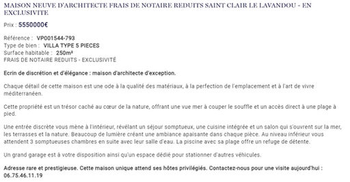 MAISON NEUVE D'ARCHITECTE FRAIS DE NOTAIRE REDUITS SAINT CLAIR LE LAVANDOU - EN EXCLUSIVITE